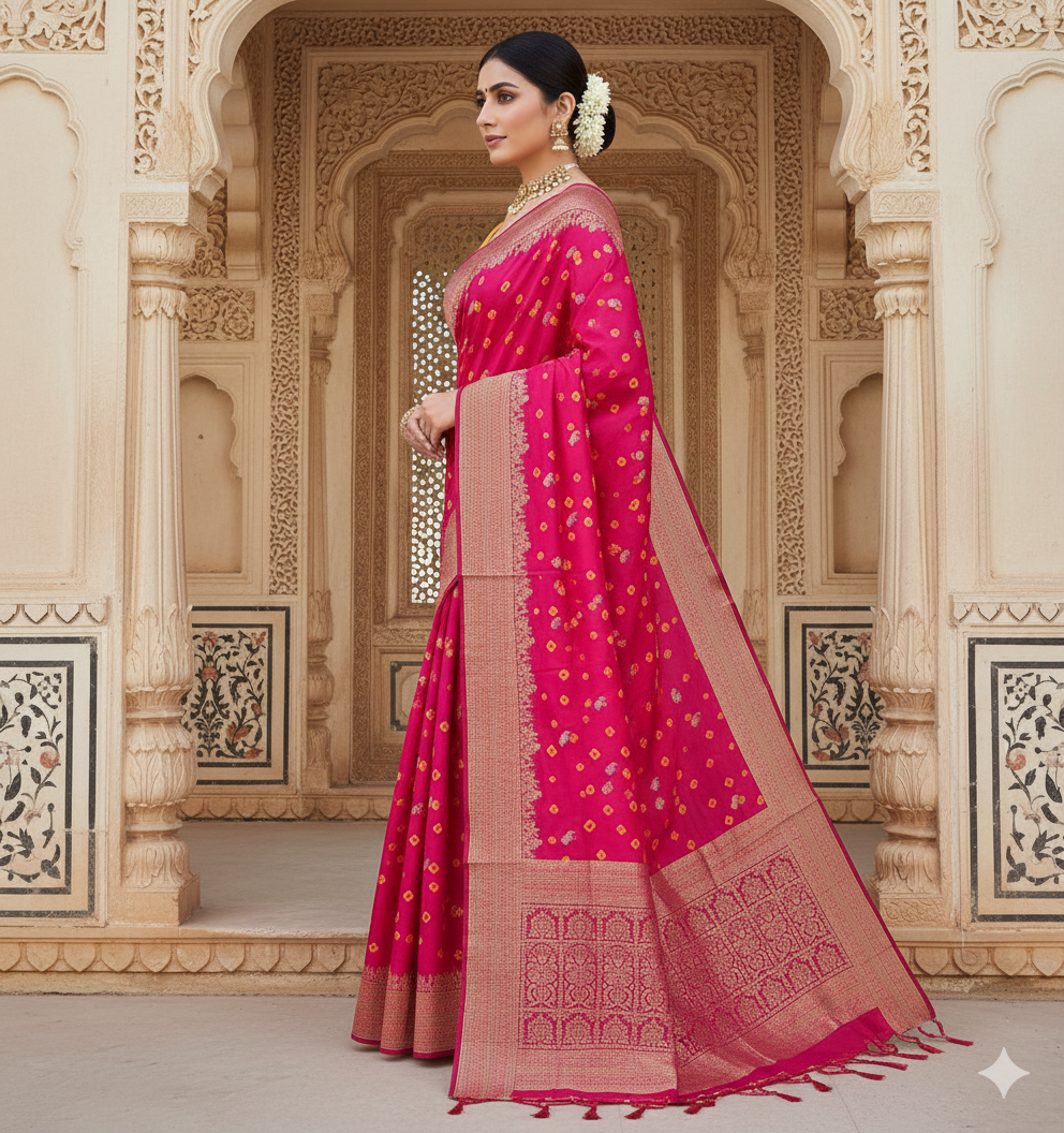 Mayur Butta Bandhej Silk Saree – Wedding Wear