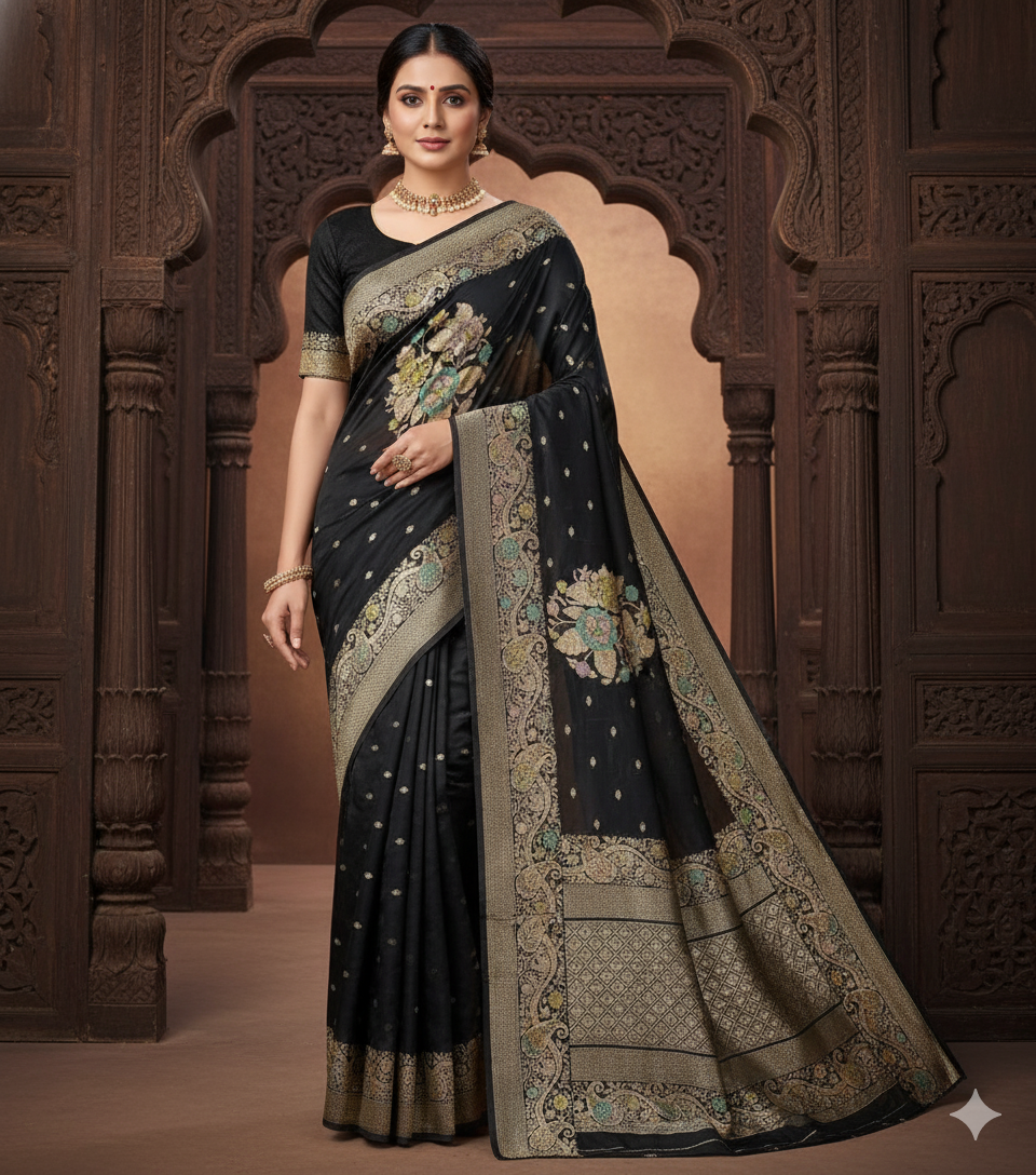 A refined creation made from 100% Viscose Bangla Silk, showcasing heritage-inspired weaving and smooth texture.