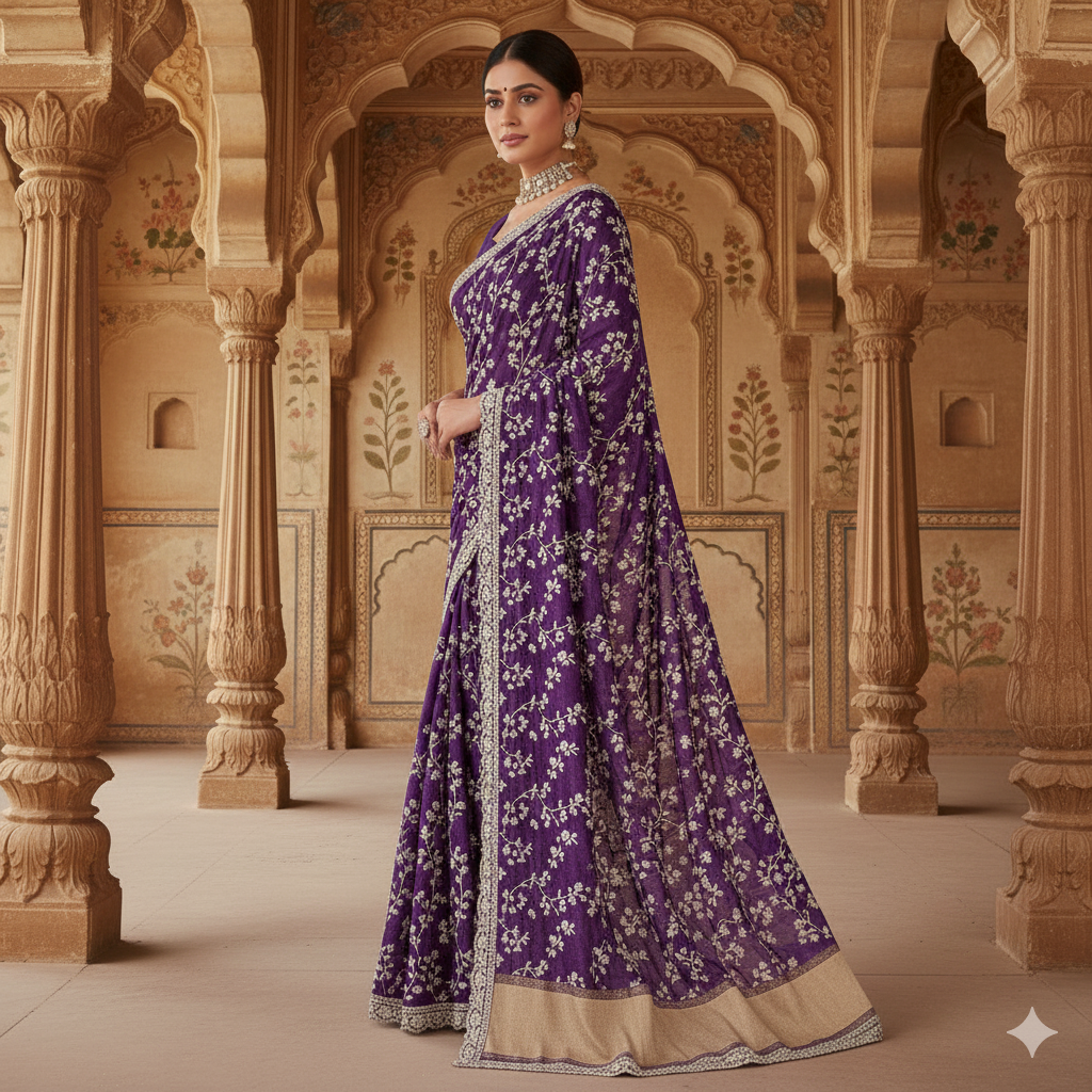 Floral Jaal Gotta Silk Saree – Wedding Wear