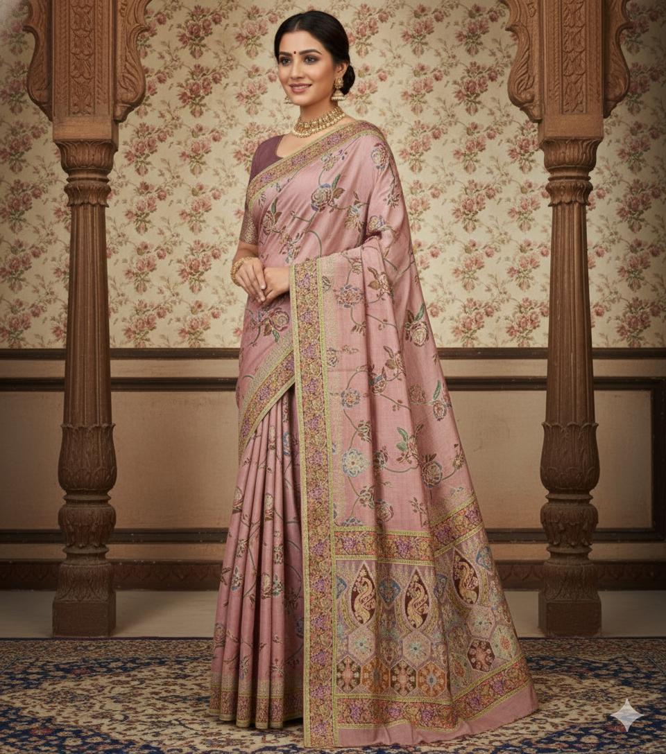 Gulab Mayur Pashmina Silk Saree – Festive Wear