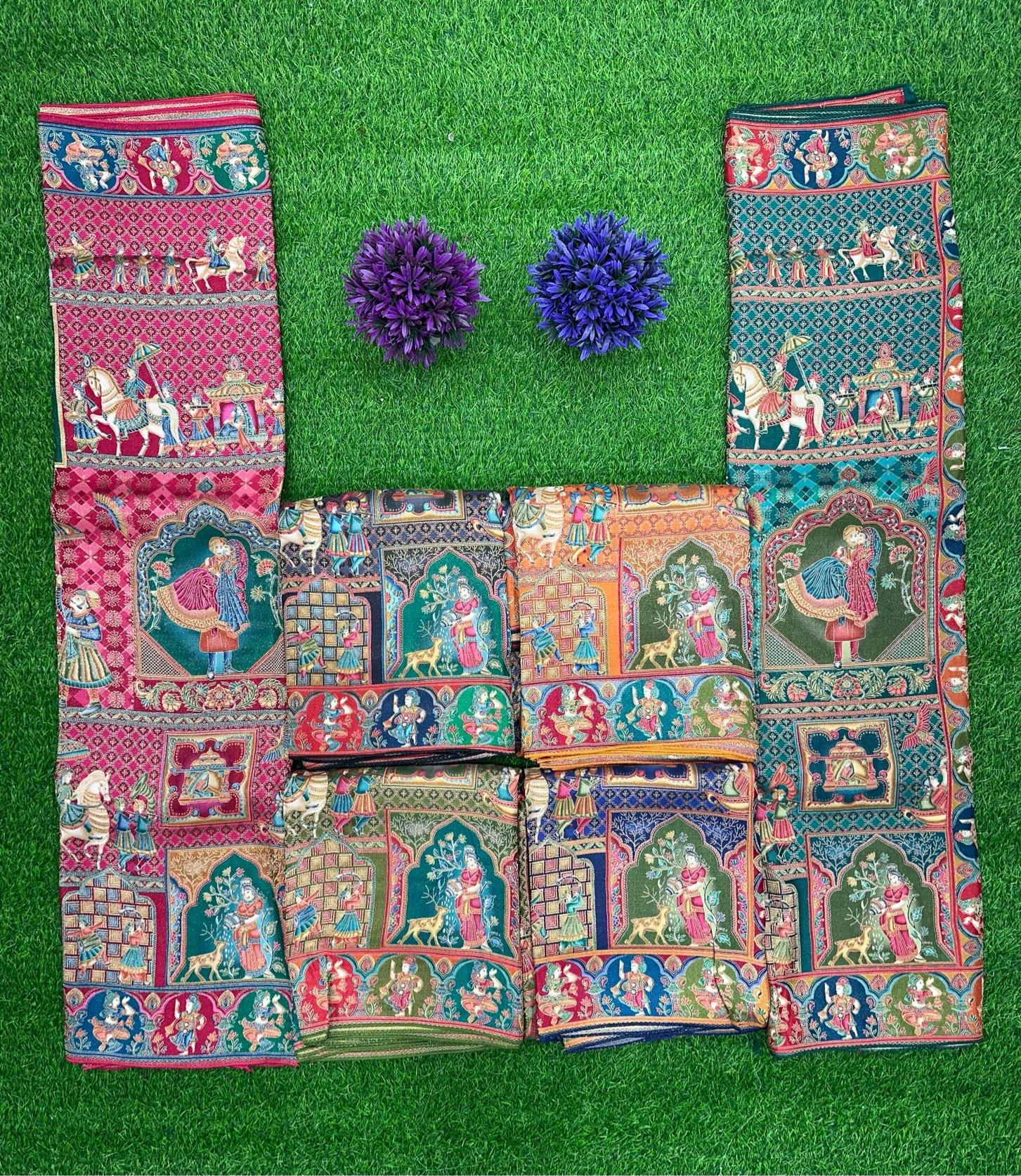 Soft viscose Pashmina silk saree with artistic position prints.