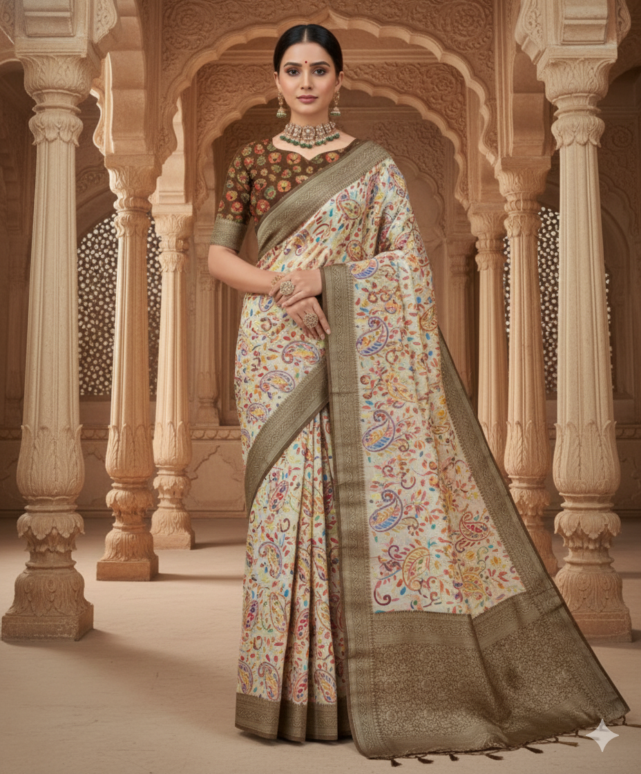Position Print with Work Silk Saree
