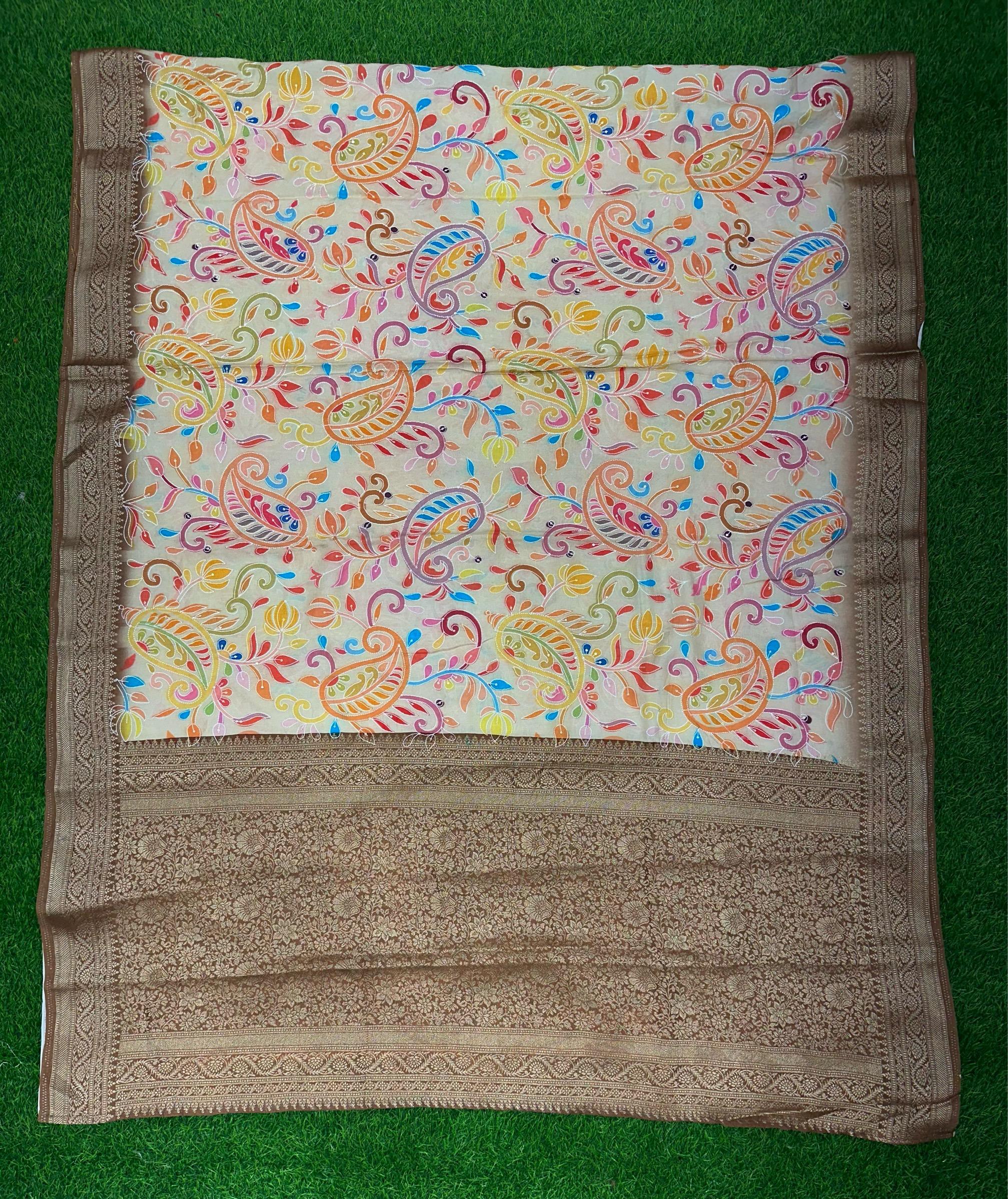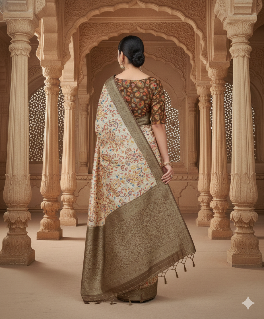 + ₹150 ShippingMehndi Rangkar Position Print Silk Saree.